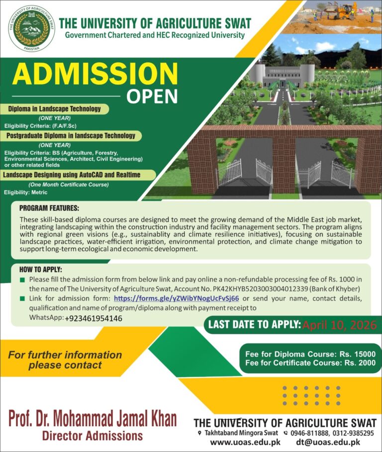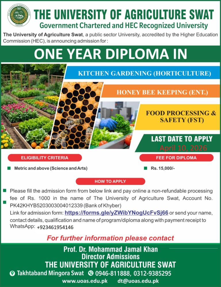 ADMISSION NOTICE Note: All the candidates applying for the admission in diploma courses/certificates at The University of Agriculture Swat are advised to follow the instruction given in the GOOGLE FORM